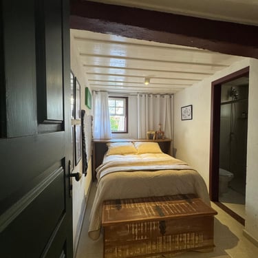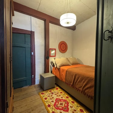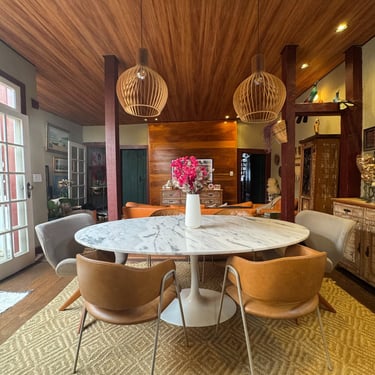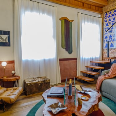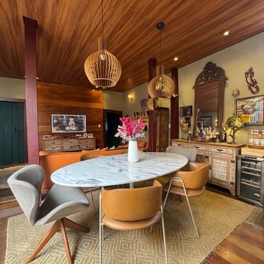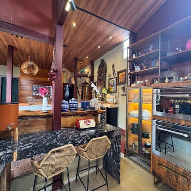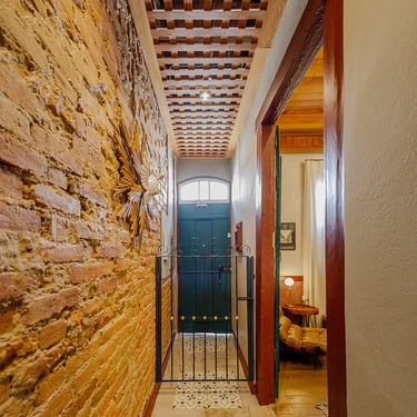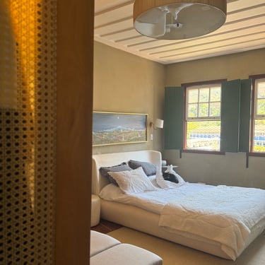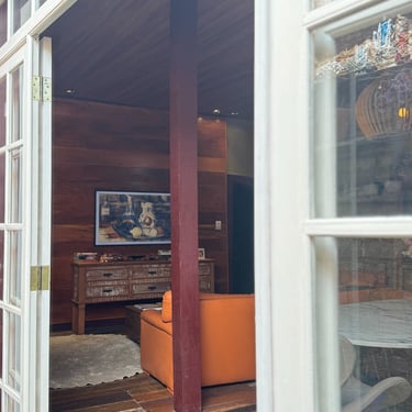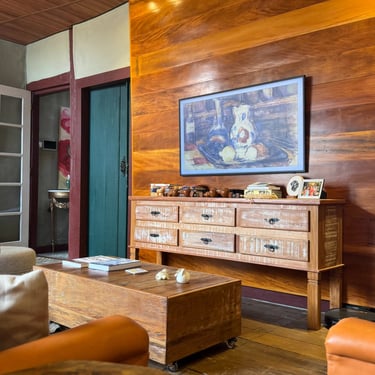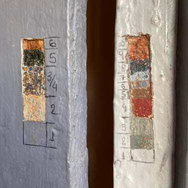 A experiência de restaurar essa casa revelou-se uma jornada, carregada de descobertas e respeito pela história impregnada nas suas paredes. Uma das técnicas mais fascinantes utilizadas foi a abertura de janelas de prospecção nas camadas de tinta. Ao raspar cuidadosamente, descortinamos, camada por camada, as cores originais da casa, ocultas sob 12 camadas de tinta aplicadas ao longo dos anos. Cada cor revelada era como uma viagem ao passado, trazendo à tona a estética e a alma de uma época esquecida. O momento de descobrir a cor original foi de pura emoção — era como se, por um instante, estivéssemos nos conectando diretamente aos antigos moradores, resgatando a essência do que um dia foi aquele espaço.