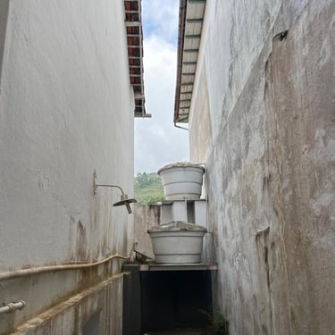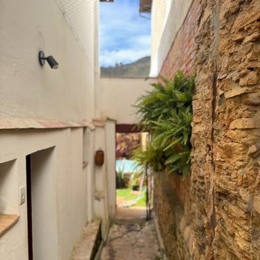 Mas a emoção se intensificou ao nos depararmos com as paredes de pau a pique, uma técnica construtiva que remonta a tempos coloniais. Essas paredes, sustentadas por amarrações de couro cru, guardavam um legado de engenhosidade e tradição. O toque no barro, ainda marcado por mãos humanas que o moldaram, foi algo profundamente comovente. Essas impressões eternizadas no material contavam uma história silenciosa, um testemunho visceral dos tempos escravistas.
