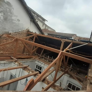 Nas primeiras visitas, tudo parecia em bom estado. As paredes recém-pintadas, o piso alinhado, o telhado aparentemente firme. Mas bastou começarmos investigações como pequenas prospecções nas paredes, forros, pisos e madeiramento do telhado para que a realidade se revelasse.