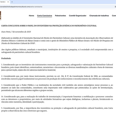 Projeto desenvolvido para o II Seminário Nacional de Direito do Patrimônio Cultural, realizado em Ouro Preto, com participação de instituições públicas e acadêmicas